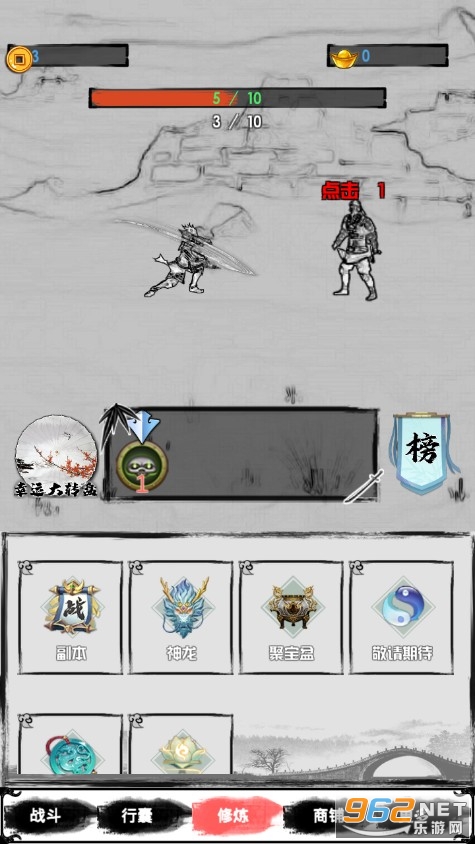 《水墨无双游戏》是一款武侠江湖题材的点击式挂机冒险游戏,水墨复古游戏画风,有超多精彩的副本等你来挑战,紫禁之巅、龙魂争夺战、中门对决、摇钱树等等,副本开放之后就可以去挑战了,完成副本就可以解锁技能获得装备,游戏可玩性很强,喜欢这类游戏的朋友不妨来试试。