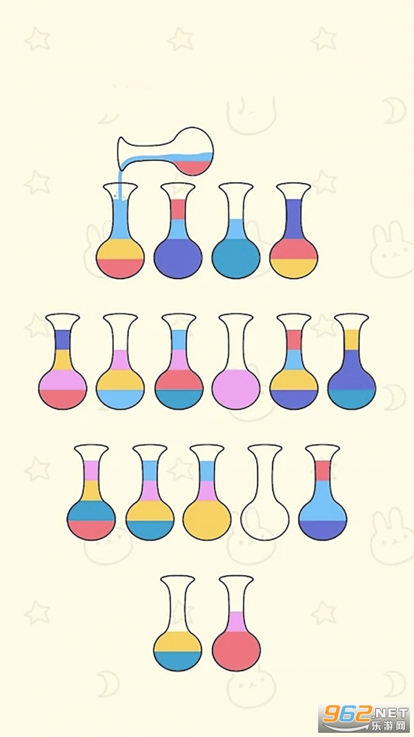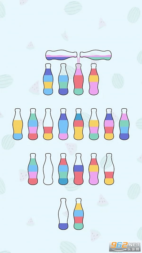 规则是,只有相同颜色的水并且玻璃上有足够的空间时,才可以倒水。