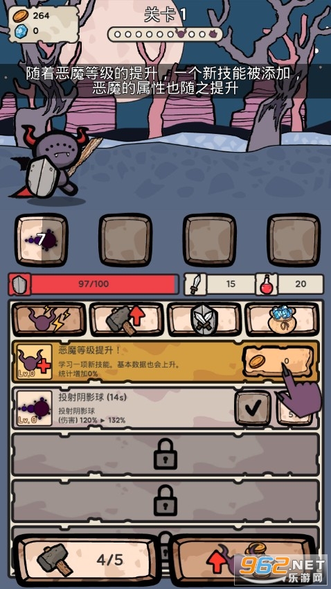 --所选的恶魔通过不断的击败各种怪物们,就能让自己属性不断的提升,开启更多的技能。