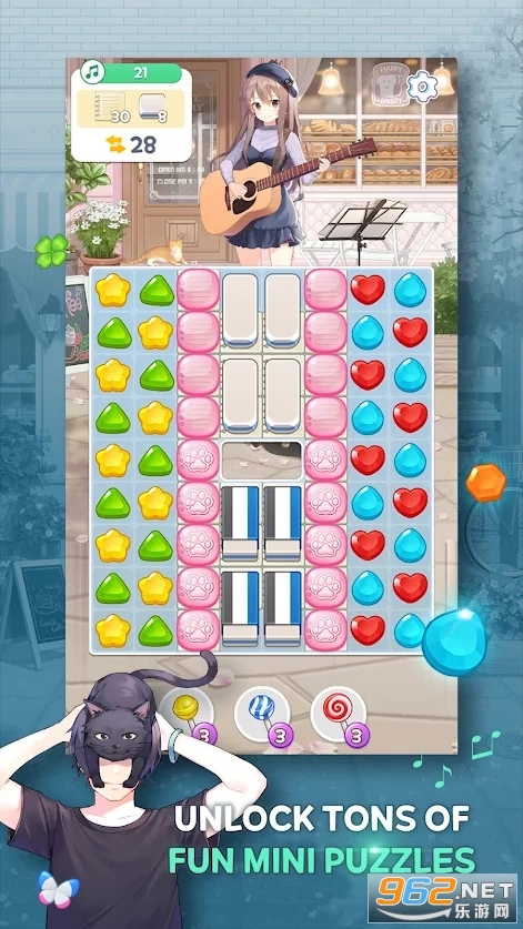 《吉他女郎3》是一款非常给力的休闲消除类游戏,简单的游戏玩法,轻松的游戏体验,不但可以打发无聊的时间,还能体验消除游戏的快乐,海量的关卡等你来挑战,感兴趣的朋友欢迎来962下载试试吧!