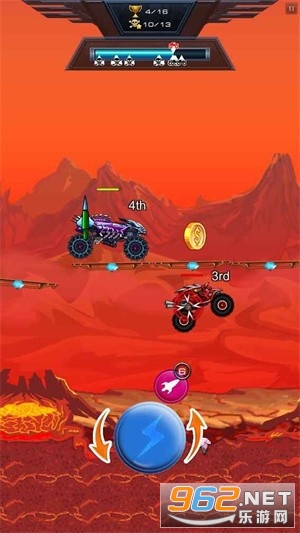 2、你将在这里和超级多的对手一起来比赛,操控好车子之后还得尽力加速,获得更高的名次。