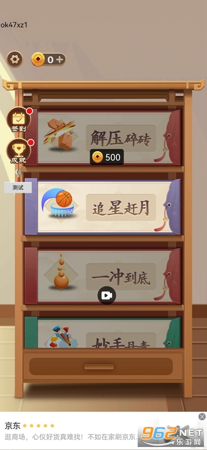 游戏中小游戏的种类还是比较多的,比如投篮、插针等等,可以用来打发时间,不过游戏有着广告,有些模式需要金币解锁,金币需要看广告、签到等方式来获得,请谨慎下载!