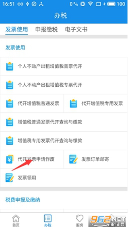 办税包括印花税申报、增值税预缴申报、一键零申报和代开发票等功能。