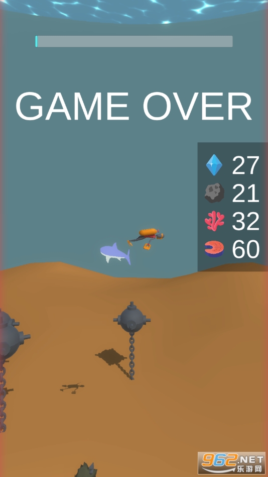 3、灵活的操控方式,但尽量不要靠近鲨鱼,在氧气存量的限制下,游戏更加紧张。