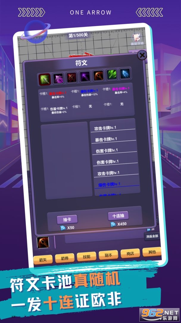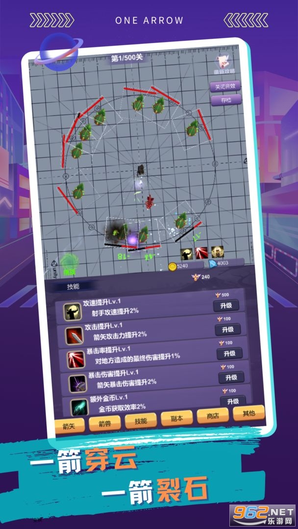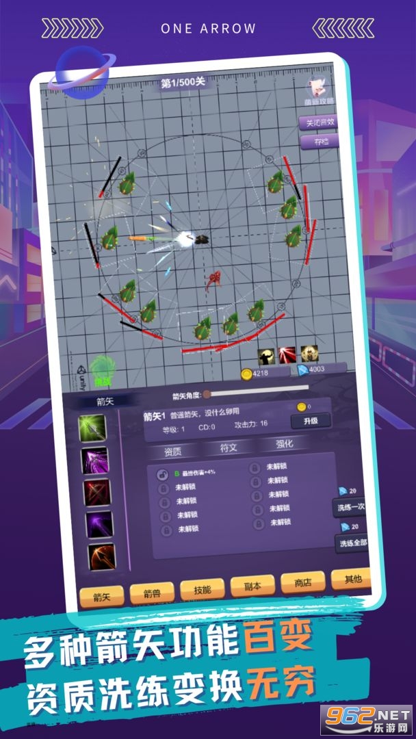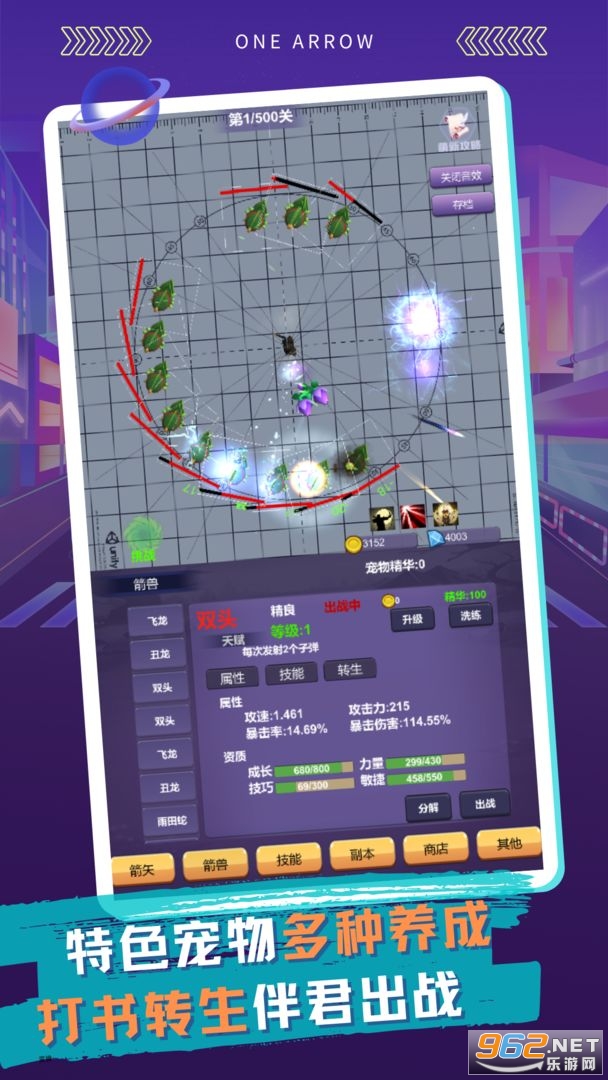 《一支支支支箭》是一款挂机玩法的射箭游戏,多种箭矢功能百变,尝试挑战各种副本解锁新箭矢和新的技能,各种技能可以让我们的箭矢攻速得到提升,游戏的前期是一个放置挂机的游戏,到后面就成了养成游戏,有抽卡、宠物养成、打副本、洗练多种玩法元素在里面。