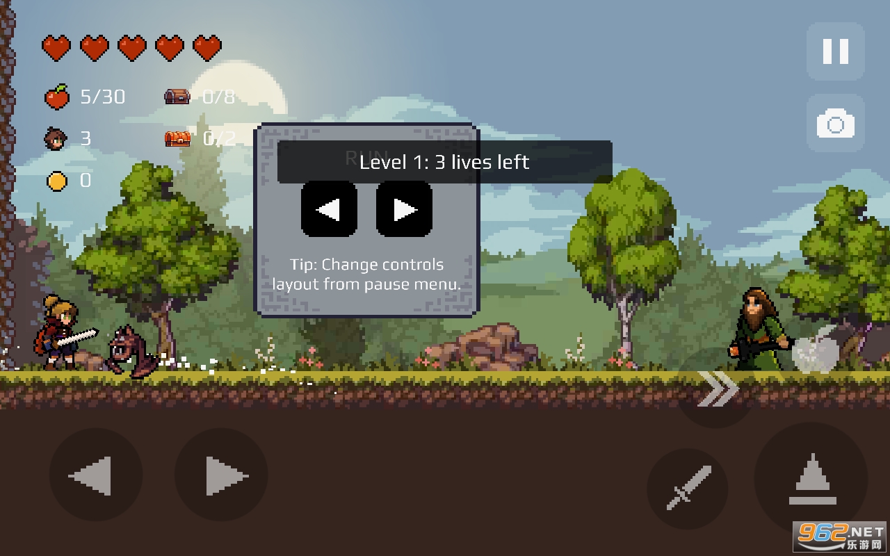 游戏中,玩家控制苹果骑士与邪恶国王的军队作战,并最后夺回你的王国!
