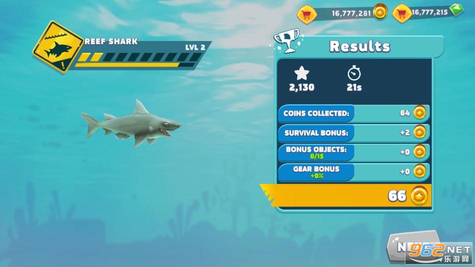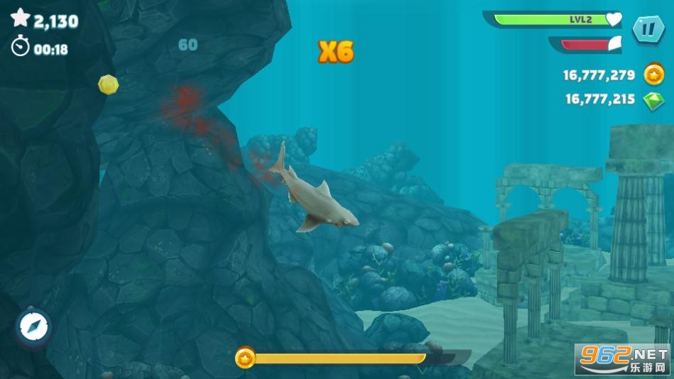 完成50个任务,寻找宝物取得金币与宝石,用来升级你的鲨鱼或者购买特殊救生道具。