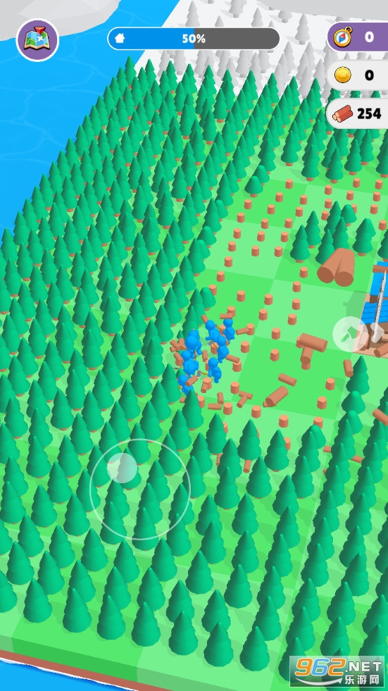 趣味的伐木建造类游戏,玩法简单,控制小人去伐木收集木材建造各种建筑,可以收集其他小人增加伐木工人数量,游戏已修改,不用看广告就能获得奖励,轻松体验。