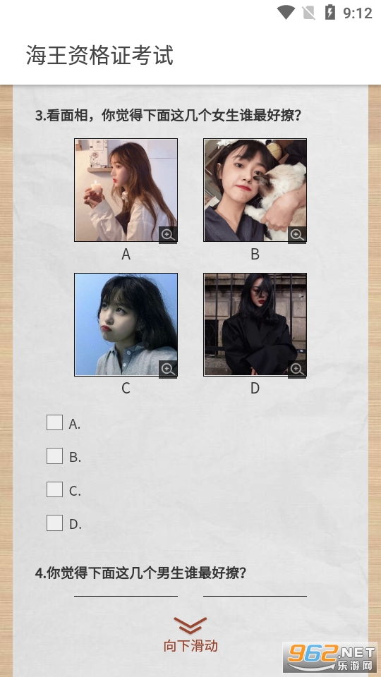 海王资格证考试测试入口:男渣女游戏中夫妻发生冲突是正常的,但如果Ta是海王那就完全不同了。男人和女人都不能忍受这种事,先去观察也许这只是个误会,当你有证据的时候去找Ta,学会区分渣男渣女。