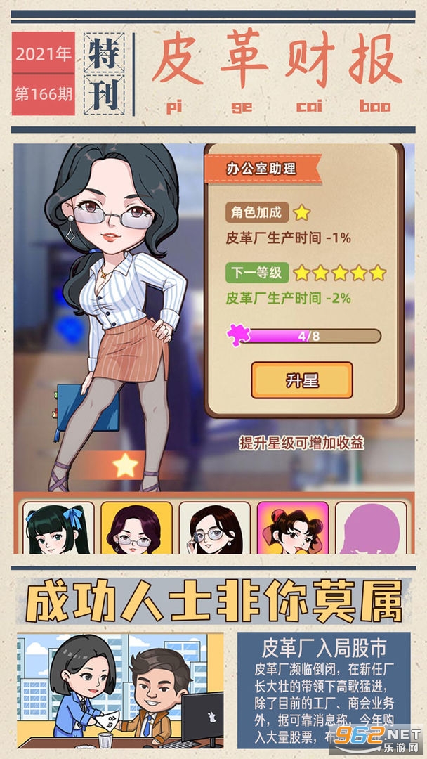 各地精英前来协助你,无论是生产还是宣传等其他的需求,她全都会;