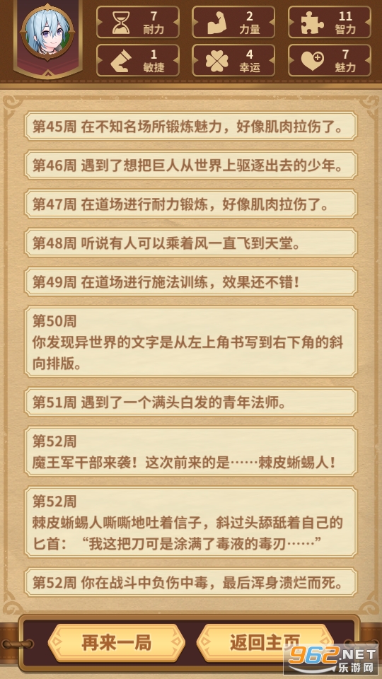 以文字玩法为核心的一款模拟休闲游戏,玩家在游戏中通过文字的方式来体验勇者穿越的日常,试玩过几次之后发现对初始的属性加点还挺有要求的,快来试试吧!