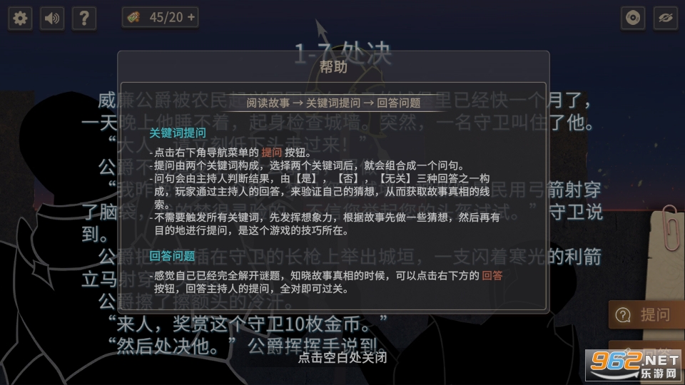 可以对每篇悬念故事进行提问,主持人小黄同志只会用【是】【否】【无关】来回答你——本该如此,不过她似乎会破例给你些提示,但显然你很高冷,并不为之所动。