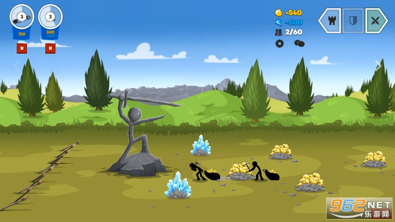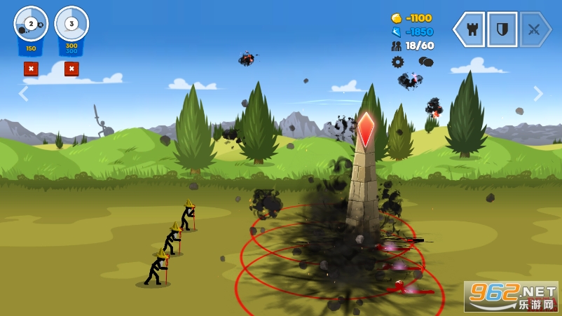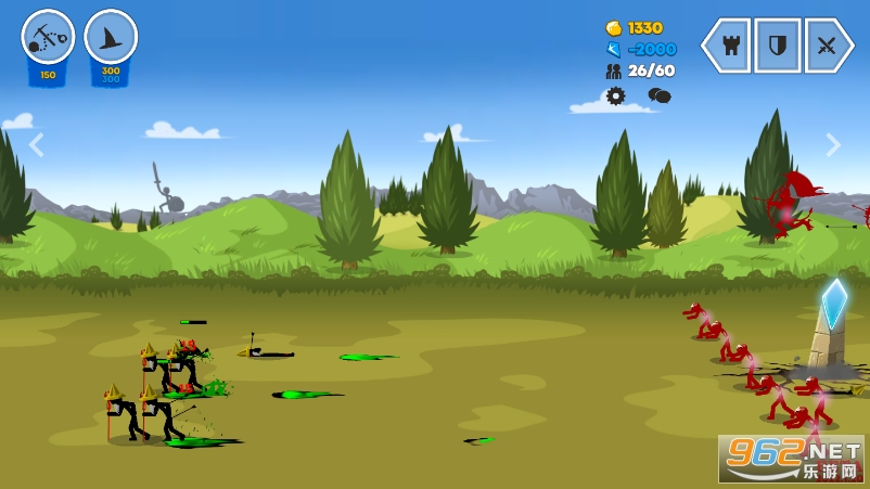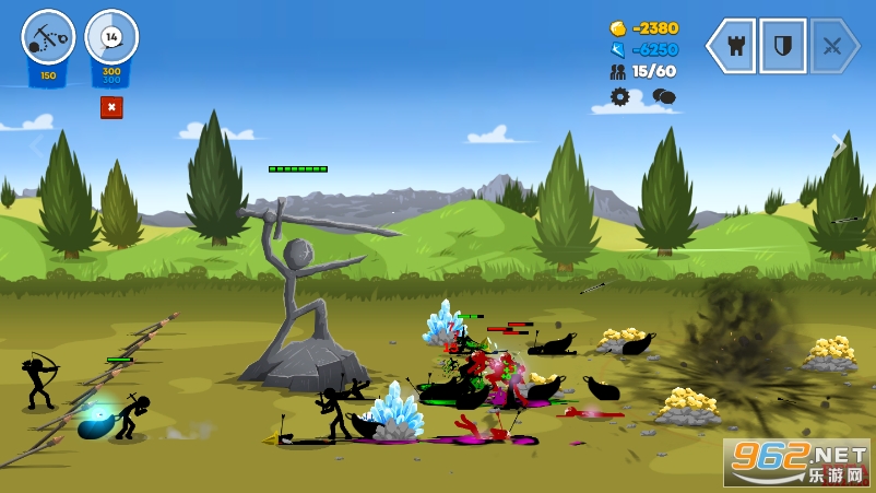 3.游戏中玩家将亲临激烈刺激的战场,指挥你的火柴人勇士进行作战,而且游戏中有着各种火柴人士兵可供训练。