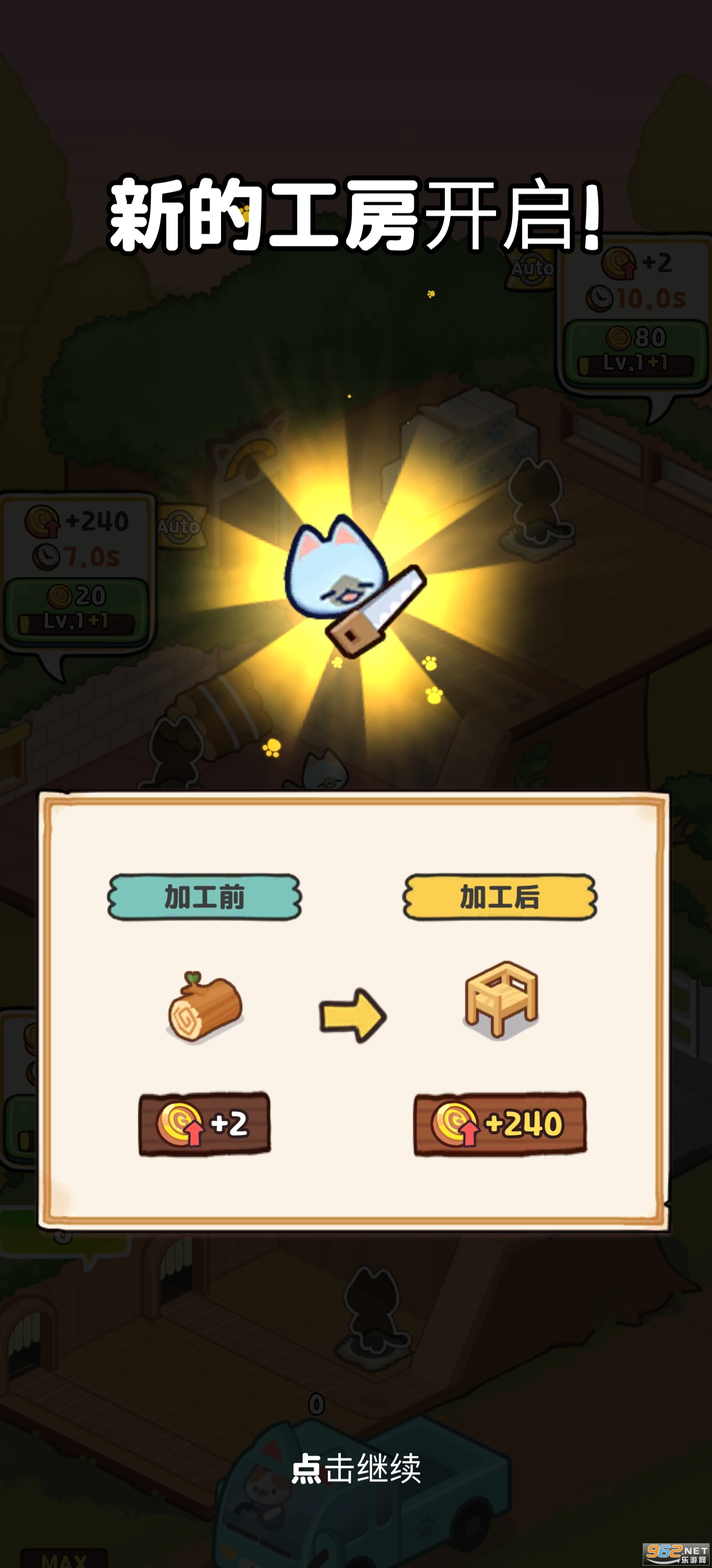 随着资金积累,你的生产线能不断扩张,还能雇佣猫咪帮你自动管理。