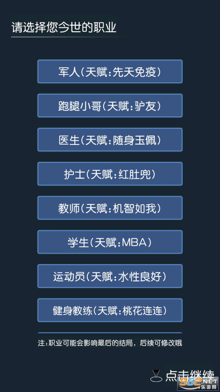 1、文字向的人生模拟游戏,有很多的属性玩家是可以自由设定的,可以自由穿越,以不同的身份重开人生。