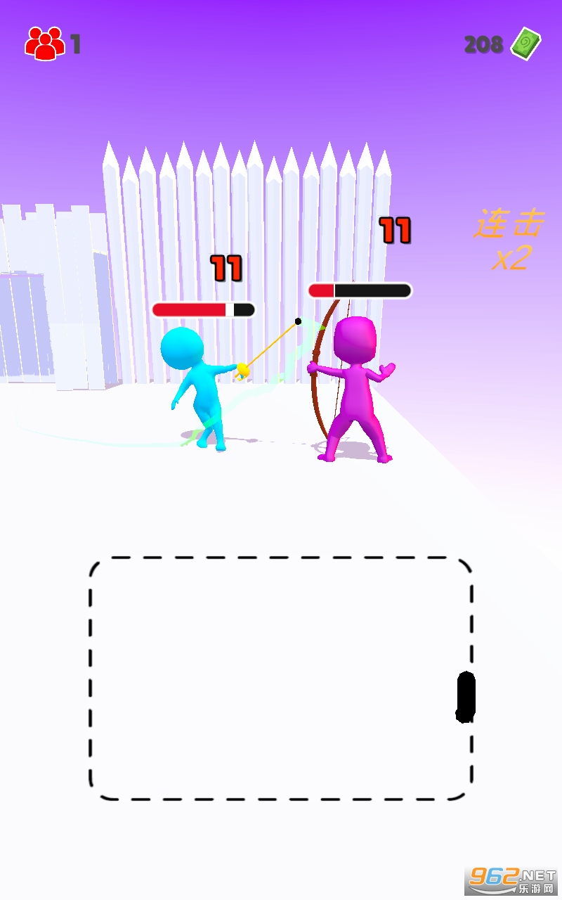 1、简单的操作技巧,只需要你轻松滑动屏幕,自由画出武器;
