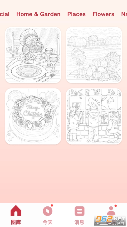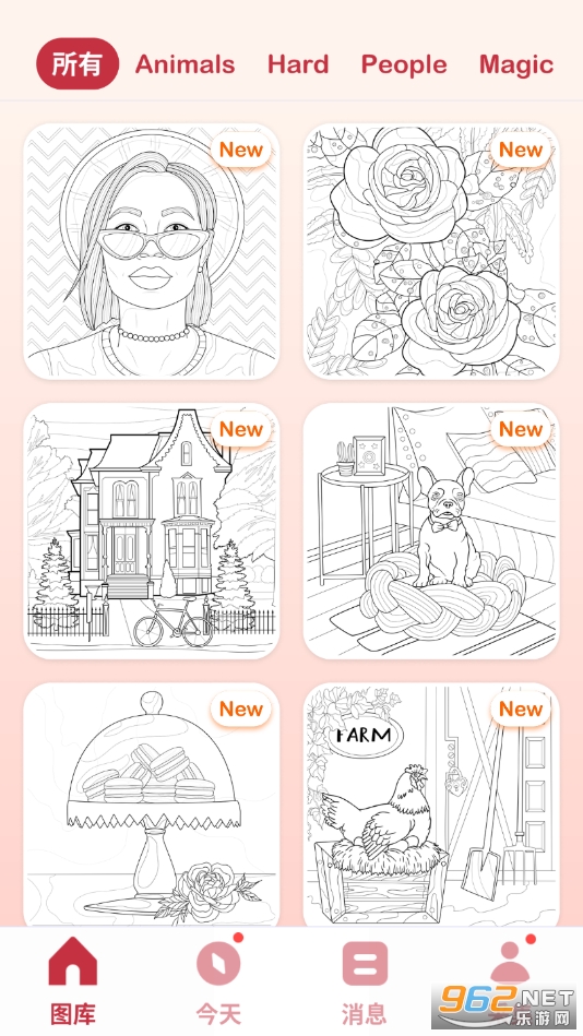 比较适合打发时间的一款休闲小游戏,画风看起来比较的精致,操作简单,里面包含了动物,植物,花卉,自然,地方,幻想,时尚等不同类型和风格的图片让你绘画涂色,有兴趣就来试试!