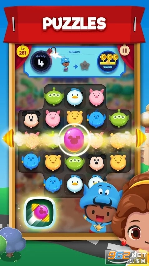 《迪斯尼流行小镇》是一款非常好玩的休闲闯关小游戏,简单的游戏玩法,轻松的游戏体验,玩家可以体验到迪士尼与消除游戏玩法的完美结合。通过轻松的点击相同动物的头像互换位置,就能轻松的做到消除了,感兴趣的朋友快来试试吧!