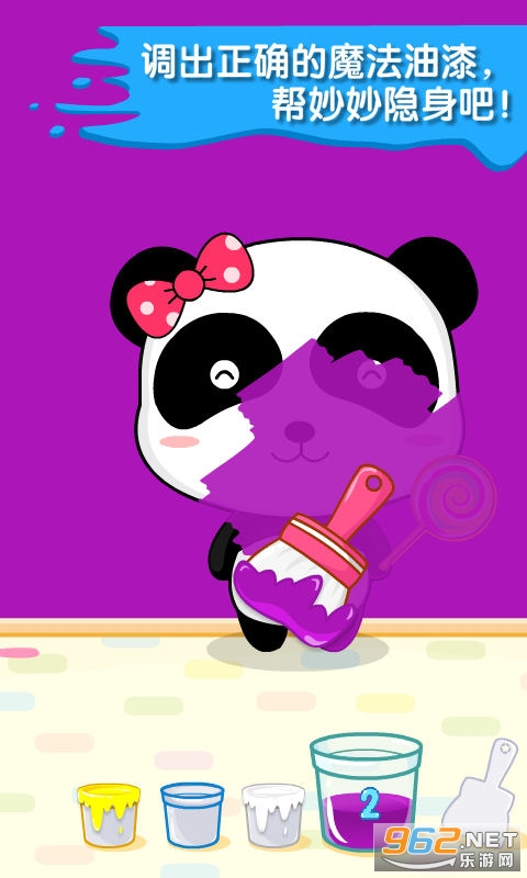 房间1——魔法油漆:将不同颜色的油漆混在一起,调出正确的颜色刷在熊猫妙妙的身上,妙妙就可以像变色龙一样隐身啦!