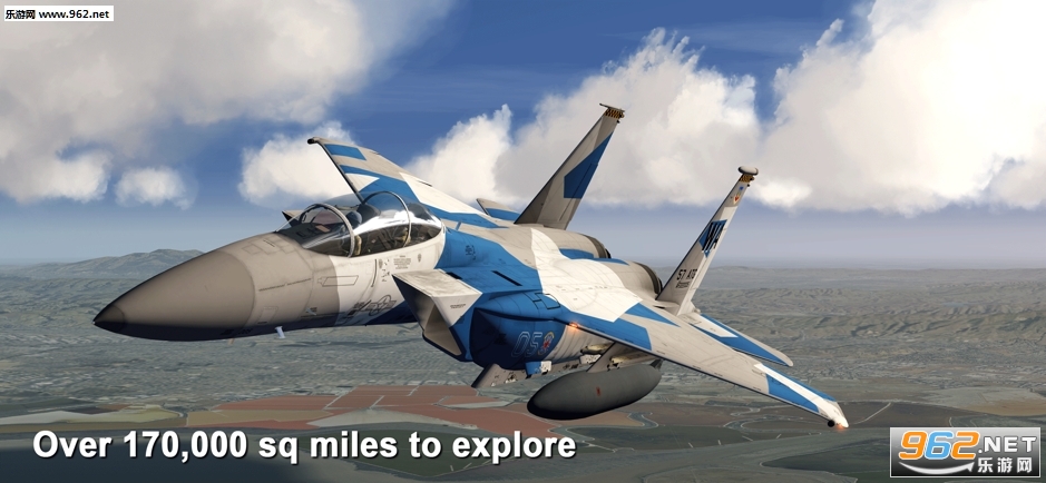 3、可飞行区域超过40000平方哩,玩法能够更加的轻松,显示山脉、湖泊和城市等地形特征,让你轻松导航。