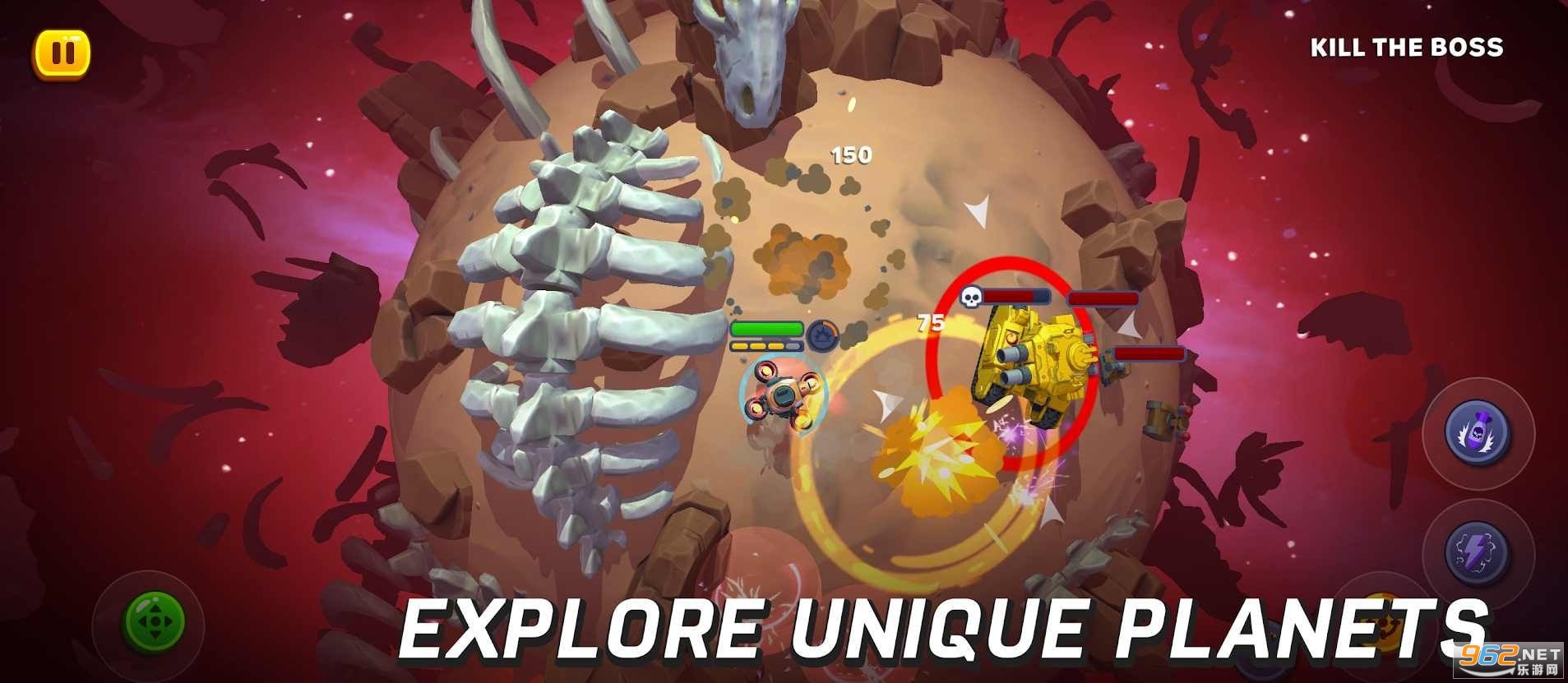 探索各种各样的行星,破坏数十个危险的敌人,升级您的坦克并乘坐地球骑行,以适应您的战斗策略。