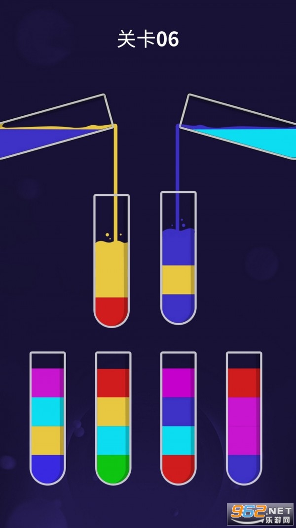 考验玩家的细微操作,只有极其细心才能完美分离彩色水,将它们分类归置;