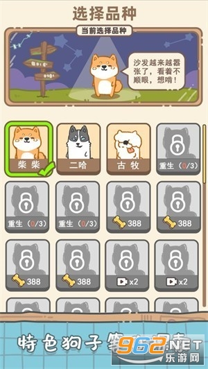 2、重开狗生的玩法新颖而有趣,游戏里的狗狗种类十分丰富。