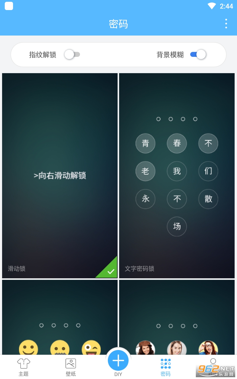 强大DIY功能,锁屏和解锁样式都可用照片和文字重新定义。各种高清壁纸、贴纸、字体,还支持导入相册相片,同时保护手机的隐私。