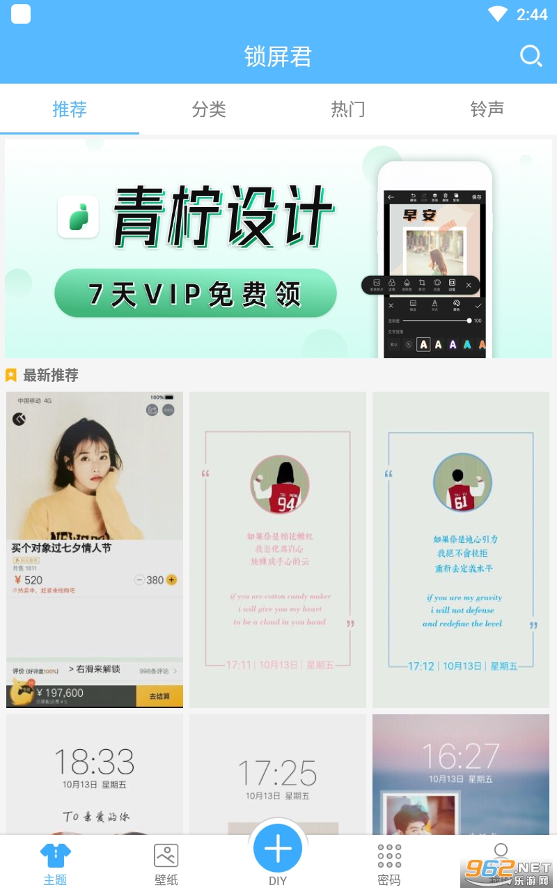 【照片主题】:多种杂志,海报风格的主题模板,可随心把情侣,亲人,朋友照片放锁屏上;