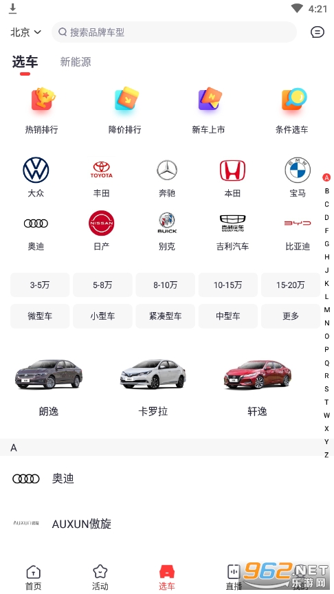 3、快速选车:50多个汽车品牌一览无余,选取爱车,只在弹指一挥间。