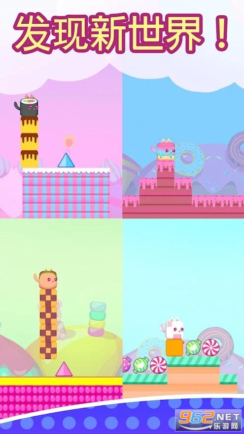 堆叠小猫游戏是一款可爱的 2D 冲刺游戏,其中一只可爱的小猫进入了糖果世界。在收集所有猫皮的同时,使用方形堆栈来飞越障碍物和尖刺!