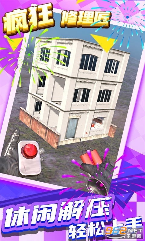 疯狂修理匠是一款破坏型解压游戏,操作简单,滑动建筑,找好位置,点击炸弹投掷,将一栋栋的建筑变成废墟,在游戏里你可以使用非常多得炸药,油罐等超级爆发工具来爆破各种各样的建筑,只需要你适当的技巧来投射炸弹的位置,更好的将建筑爆破,游戏画面感十足,令人难忘的破坏物理反应,逼真的爆炸和碎片细节,让你体验到一个拆迁公司老板的快感,申请各种各样的订单,完成更多的任务,成为拆迁高手吧!