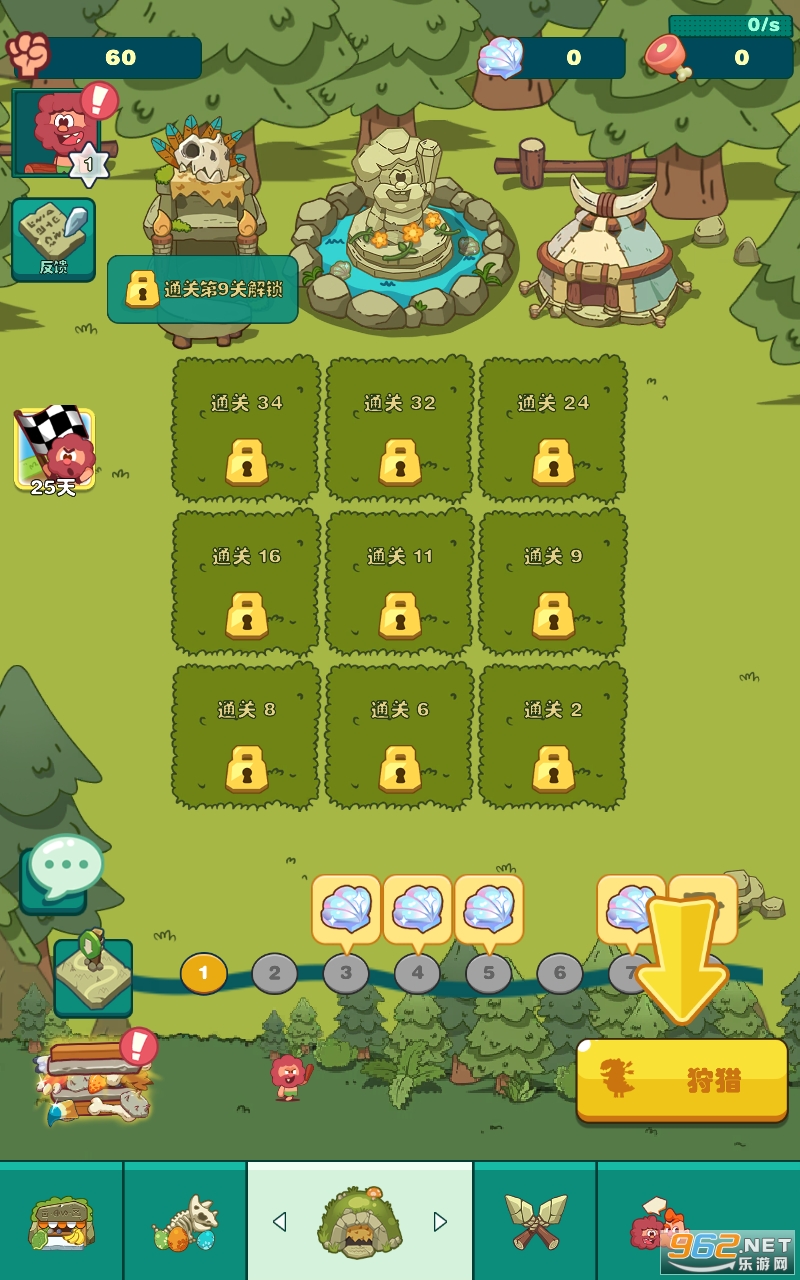 史前部落中生活着一群原始人。他们依靠狩猎生存。他们学会了驯服野生动物并在他们的部落中饲养它们。为了打败更大更强的野兽,他们开发了各种类型的战士。