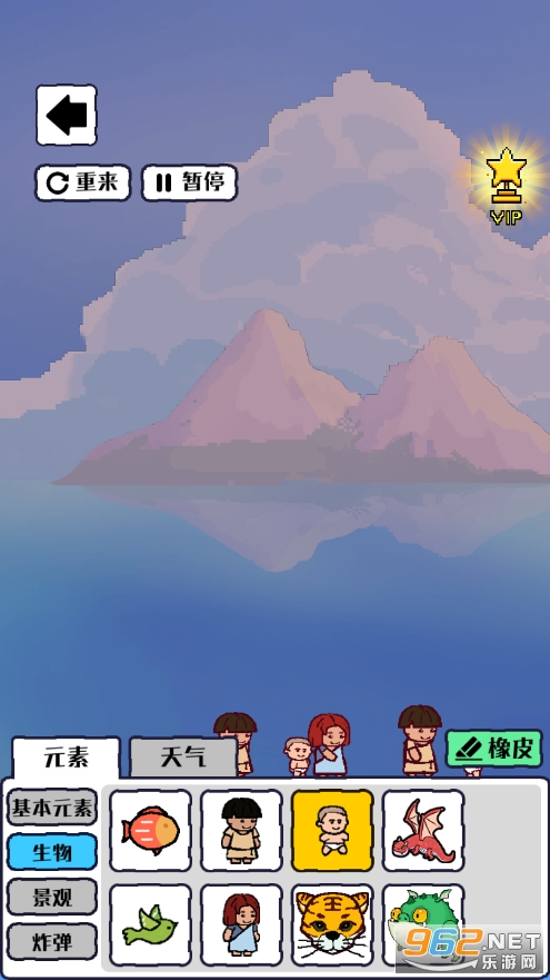 《沙盒宇宙》是一款高度自由的像素风国产翻版游戏。采用了竖版的画面,玩家可以在这里使用,水,土,火,等基本的元素,npc,自然景观,自由的选择天气,创建出不同的世界,也可以使用炸药武器一键摧毁所有,玩法自由!