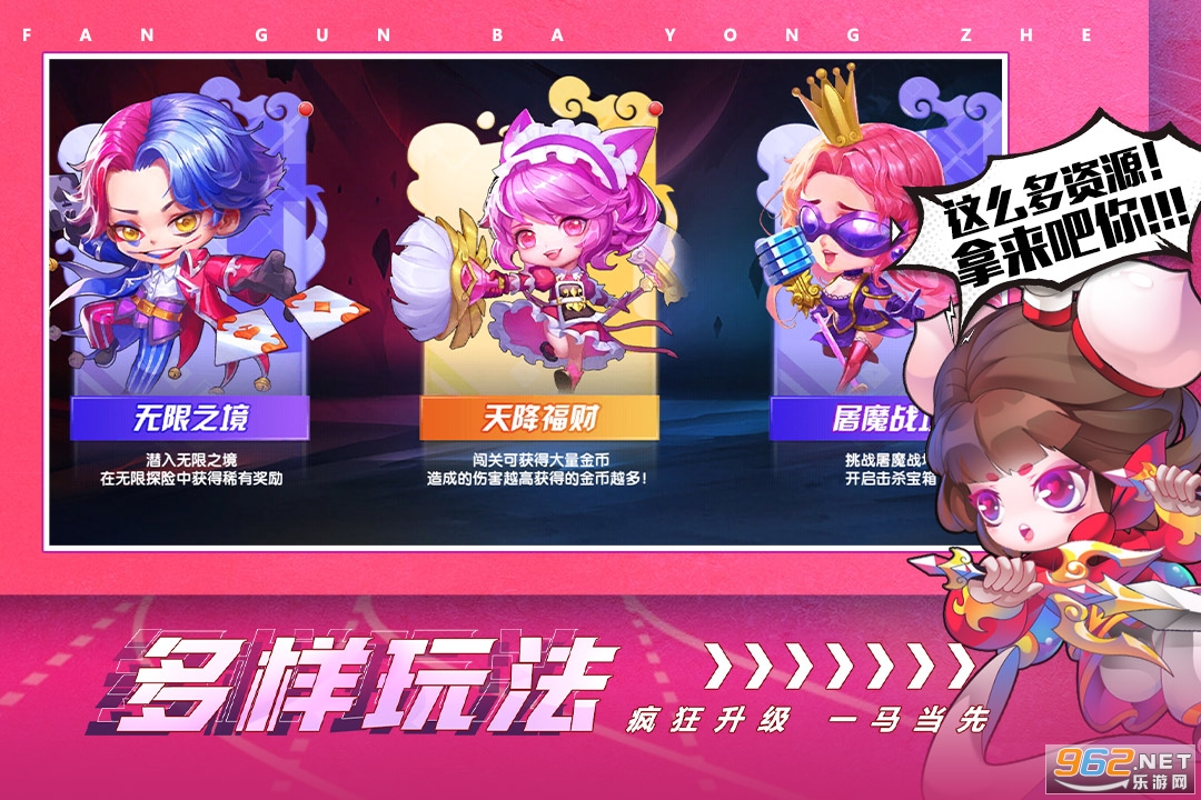见信好:协助“中二星”星球复原的勇者,在冒险途中,你可以召集多名小伙伴一起发射弹幕扫清敌军、跨越障碍;亦可召唤萌宠坐骑陪你战斗。