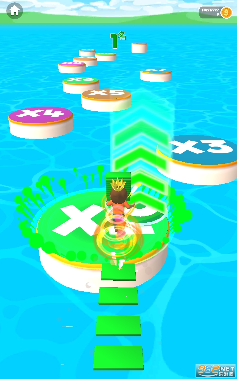 3、在赛道上奔跑,每一个玩家需要去收集地面上出现的颜色方块,记住越多越好。