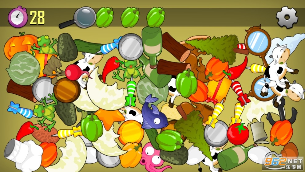 在一堆物品中寻找到需要你寻找的目标物,大多数情况下需要寻找三个左右的目标物,有时候也会需要你寻找更多的目标物,游戏中关卡的难度会逐渐提升,大家赶快下载游戏来测试一下自己的眼力吧。