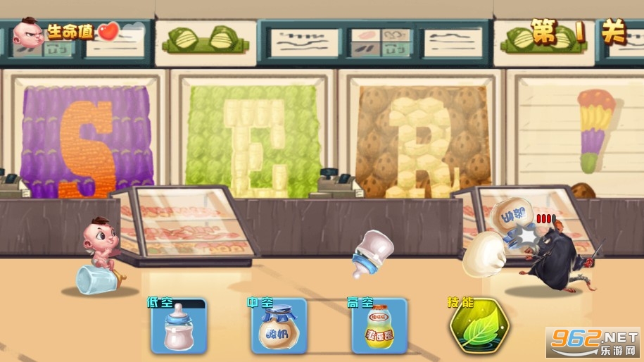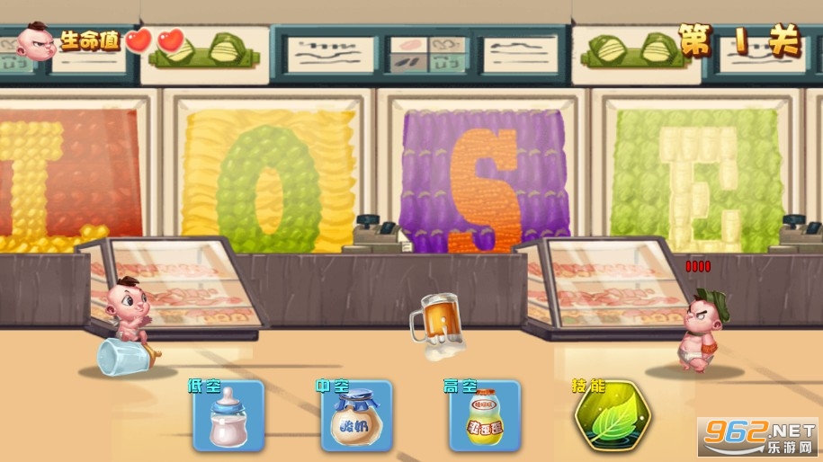 《让零食飞》是一款画风玩法都十分魔性好玩的休闲对战游戏,帮助可爱呆萌的婴儿宝宝去击败boss,各种零食就是他的武器,酸奶、爽娃娃、奶瓶、糖果等等,疯狂投掷,可以低空投掷也可以高空、中空投掷,这个就需要玩家在实际对战中去控制选择了。