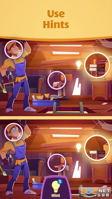 《发现隐藏的差异》是一款非常好玩的找茬休闲小游戏,简单的游戏玩法,轻松的游戏体验,游戏非常考验玩家的耐心,游戏里面还有海量的游戏道具玩家可以随意使用,是你打发无聊的时间,感兴趣的朋友还在等什么?欢迎来962下载试试吧!