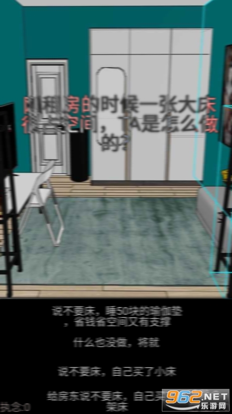 《居住训练器》是一款可以让人居住力变强的训练器,玩法类似自信训练器。通过文字剧情的形式,让玩家在不同的房间里面,灵活的完成各种任务和挑战,比如一张很大的床怎么摆在一个小房间里面不占空间,不够专注觉得被干扰时怎么版,谨慎内耗很严重怎么办等等,通过游戏来提升极限省钱的能力!