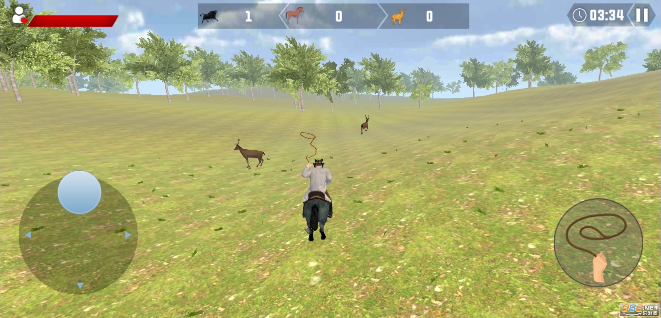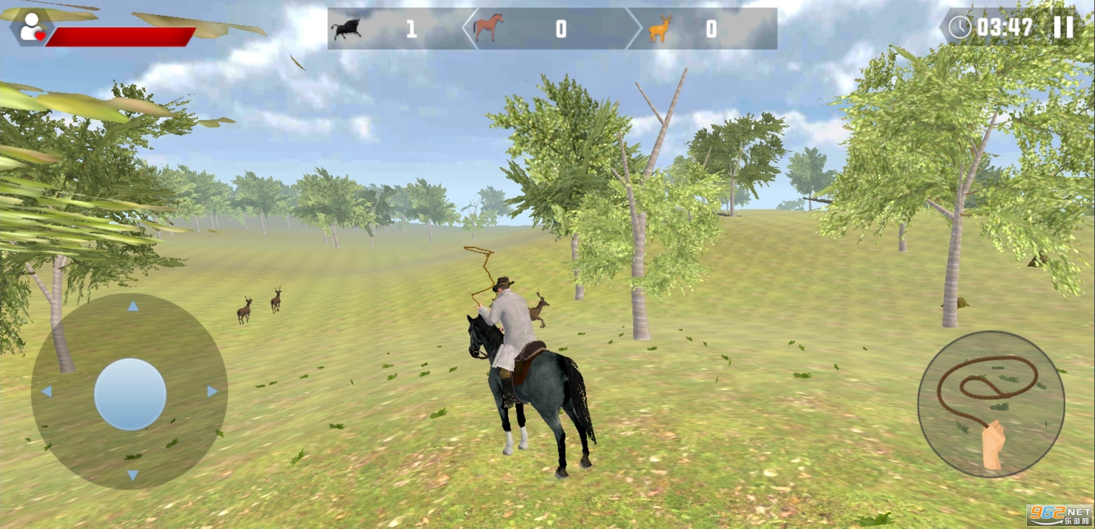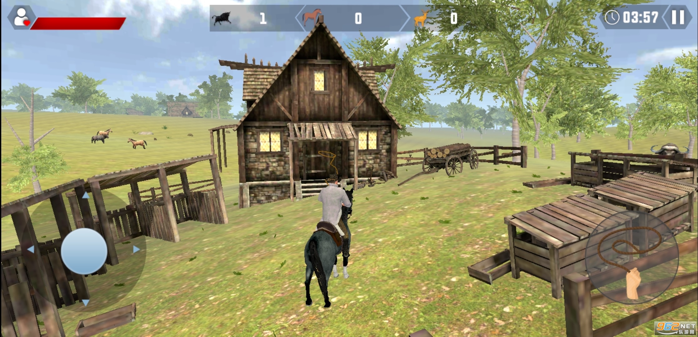 2、摆动你的套索,像真正的牛仔,凭借自己的本事穿越西部地区,还可以捕捉不少的动物。
