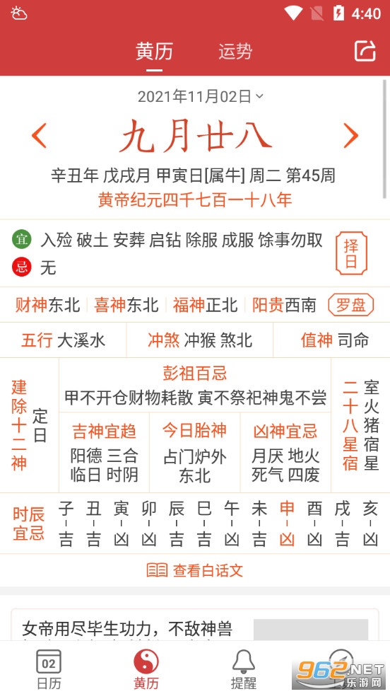 3、黄历:拥有完整的老黄历信息,详细罗列出农历节气变化,每日宜忌,吉神凶神,天干五行,同时显示公历、农历等多套历法;周公解梦让你了解自己的梦境;