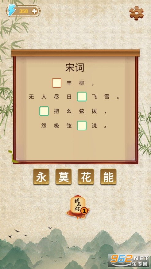 通过这款游戏我们可以测试一下自己的诗词储备量,如果你从小到大学过很多的诗词,玩这款游戏简简单单,如果掌握的诗词谚语非常少玩起来就相当吃力了,正确答题闯关还能不断地领取体力值,每次答题都需要消耗一定的体力值。