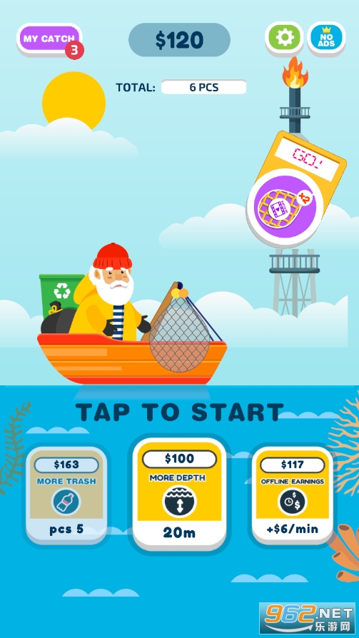 -简单和上瘾的游戏玩法:只要保持和拖用你的网捕捉垃圾!