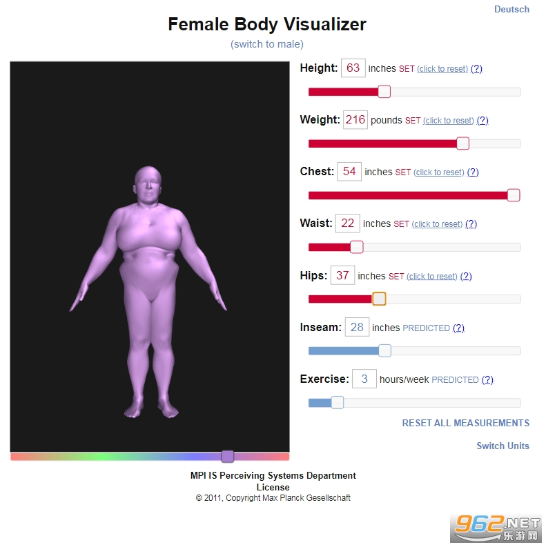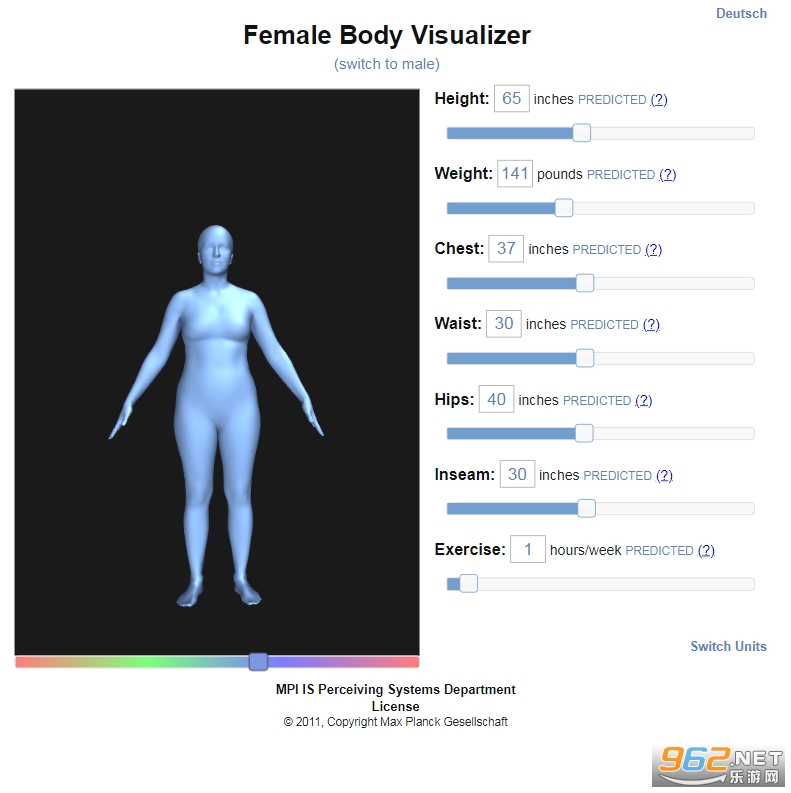 《人体可视化模拟器网页版》是最近挺火的一款身体可视器,大家可以通过此软件自由的输入身高,重量,胸围,妖尾,内缝,背部等相关的数据信息,就可以直观看出自己的身体状况,对自己身体各个部位哪里胖,哪里瘦,一目了然,针对性的进行练习,感兴趣的话就来试试!