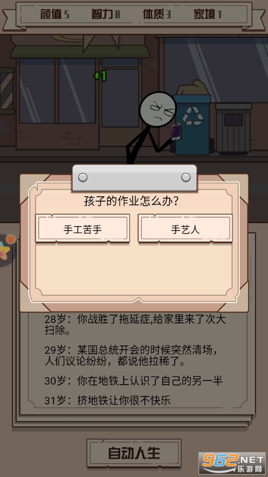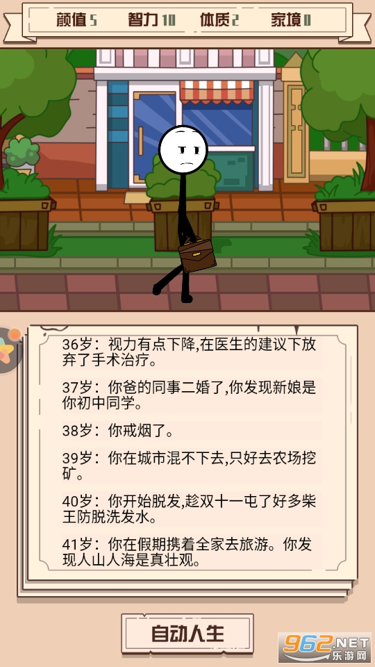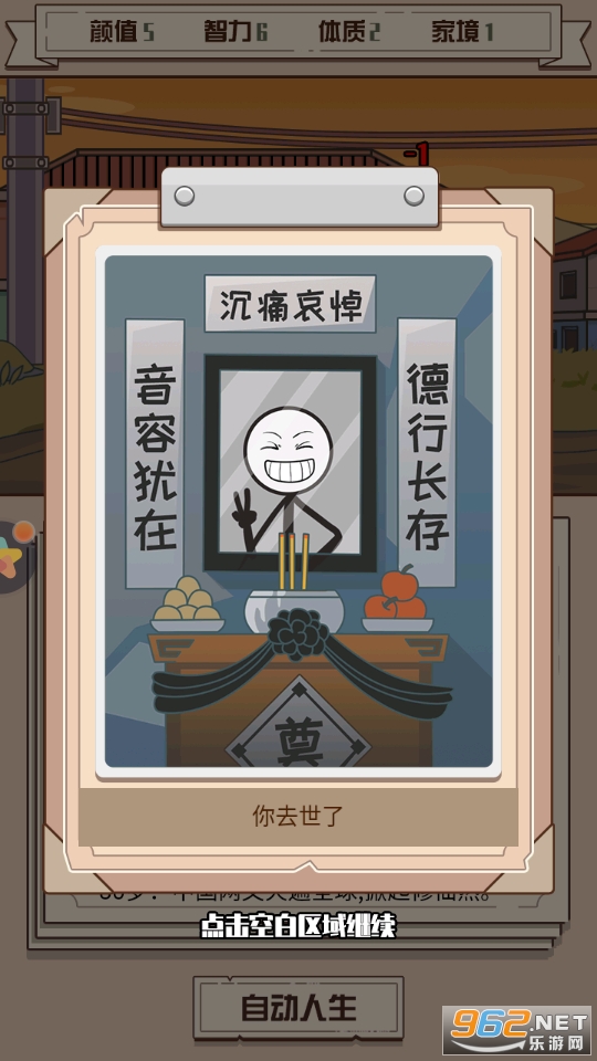 非常有趣的一款以模拟人生玩法为核心的休闲游戏,玩家在游戏中扮演火柴人,选择你喜欢的属性,以文字加动画的方式走过你独特的一生,各种不同的活法等你来体验哦!