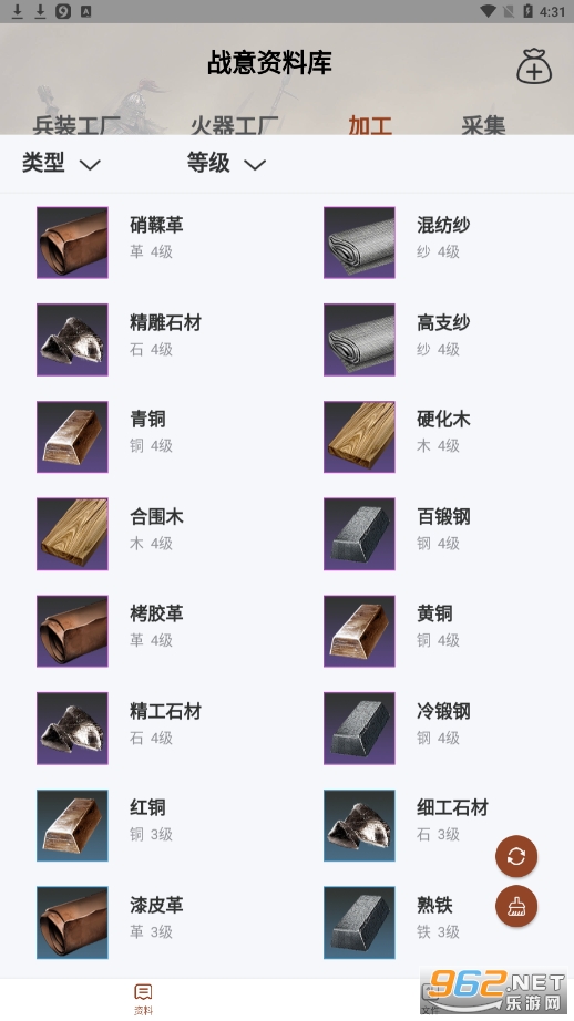 专为战意制作的一款资料库工具,内容包括各种加工物品的制作,材料来源等!