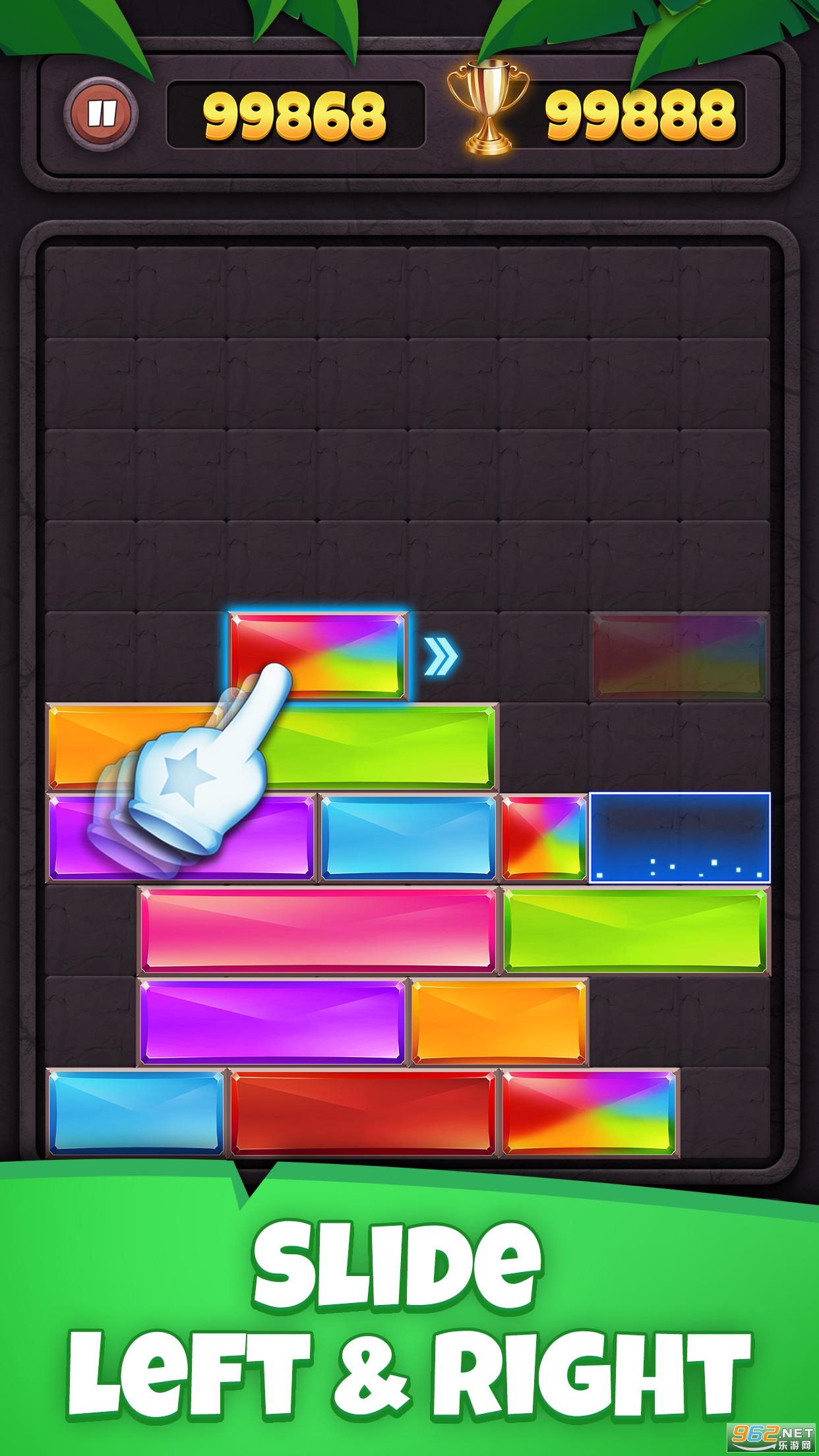 只需水平移动宝石,尝试用一条线填充宝石,并消除以获得高分。这个游戏很简单,但有趣且具有战略意义。SLIDING BLOCK JEWEL 旨在帮助您重新充电,减轻压力并增加积极的社交互动。