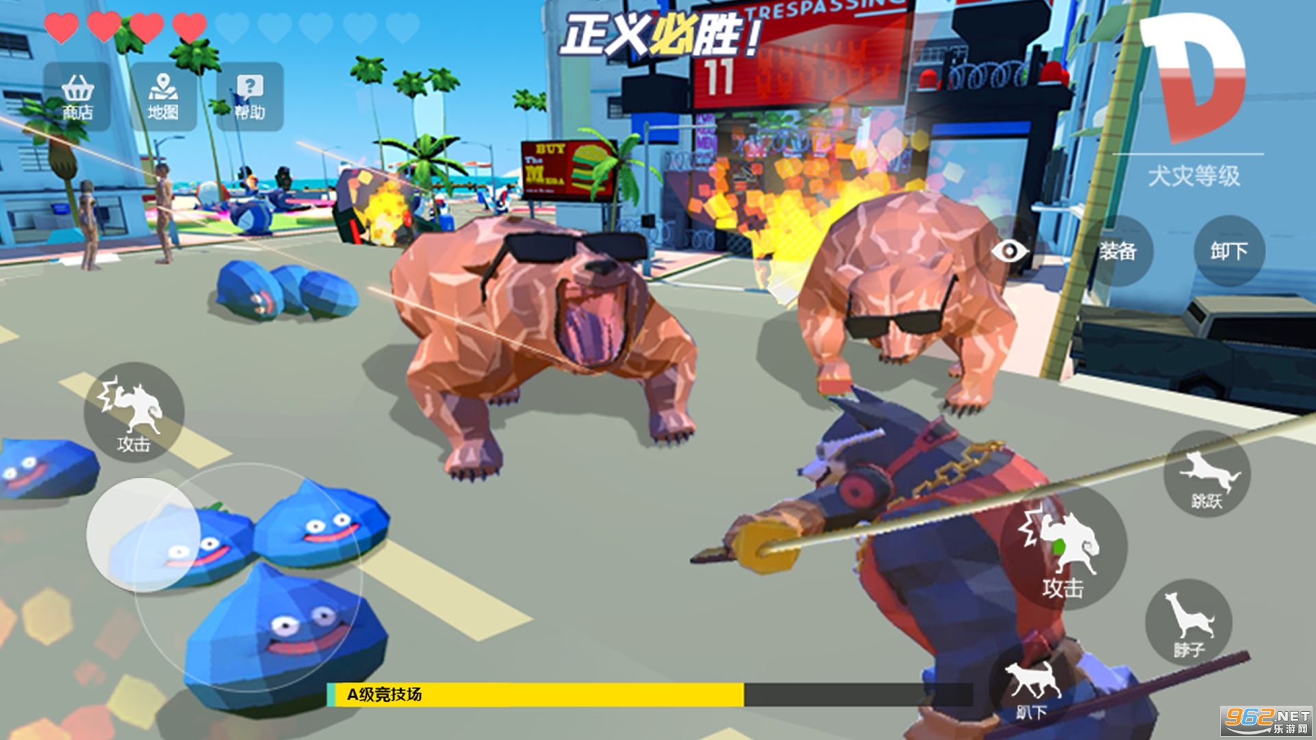--选择不同的狗开始冒险,在自由的城市里冒险,你可以戏弄城市里所有的动物,但是要小心敌人。