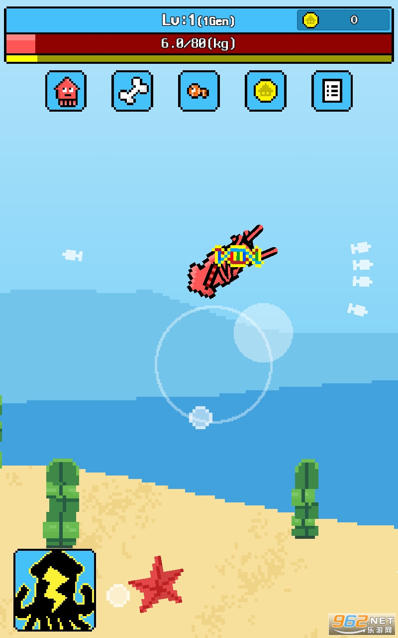 变成一只巨大的鱿鱼,吃掉海里所有的鱼,从浮游生物到鲸鱼!